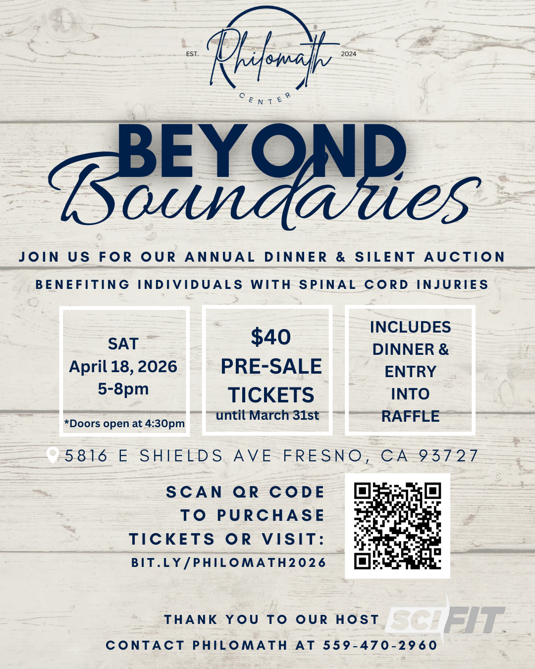 Our next Philomath Fundraiser will be held on April 18, 2026, from 5–8pm. Pre-sale tickets are now available